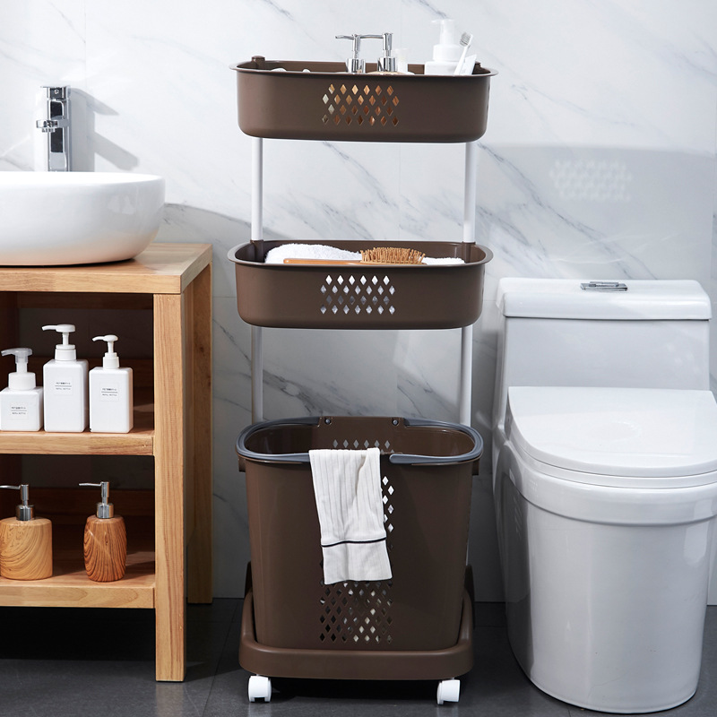 廠家直銷大號(hào)三層臟衣籃 浴室塑料臟衣收納籃 多功能帶滑輪儲(chǔ)物籃