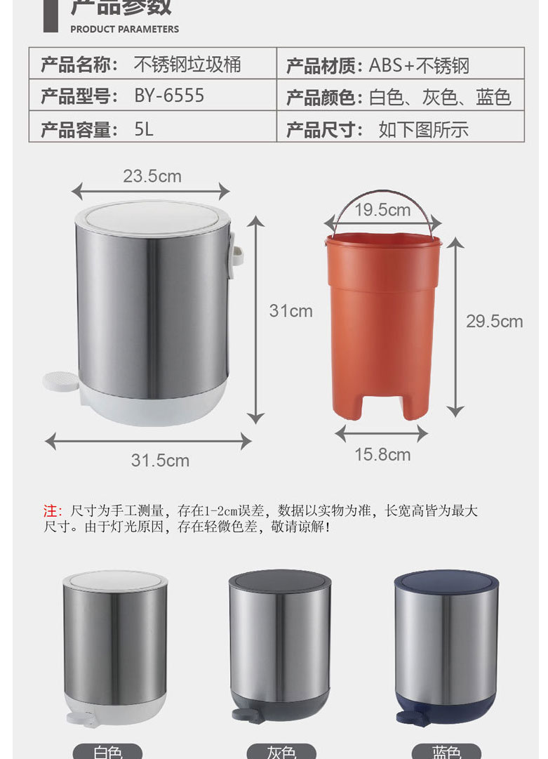 品名:不銹鋼垃圾桶(5L)